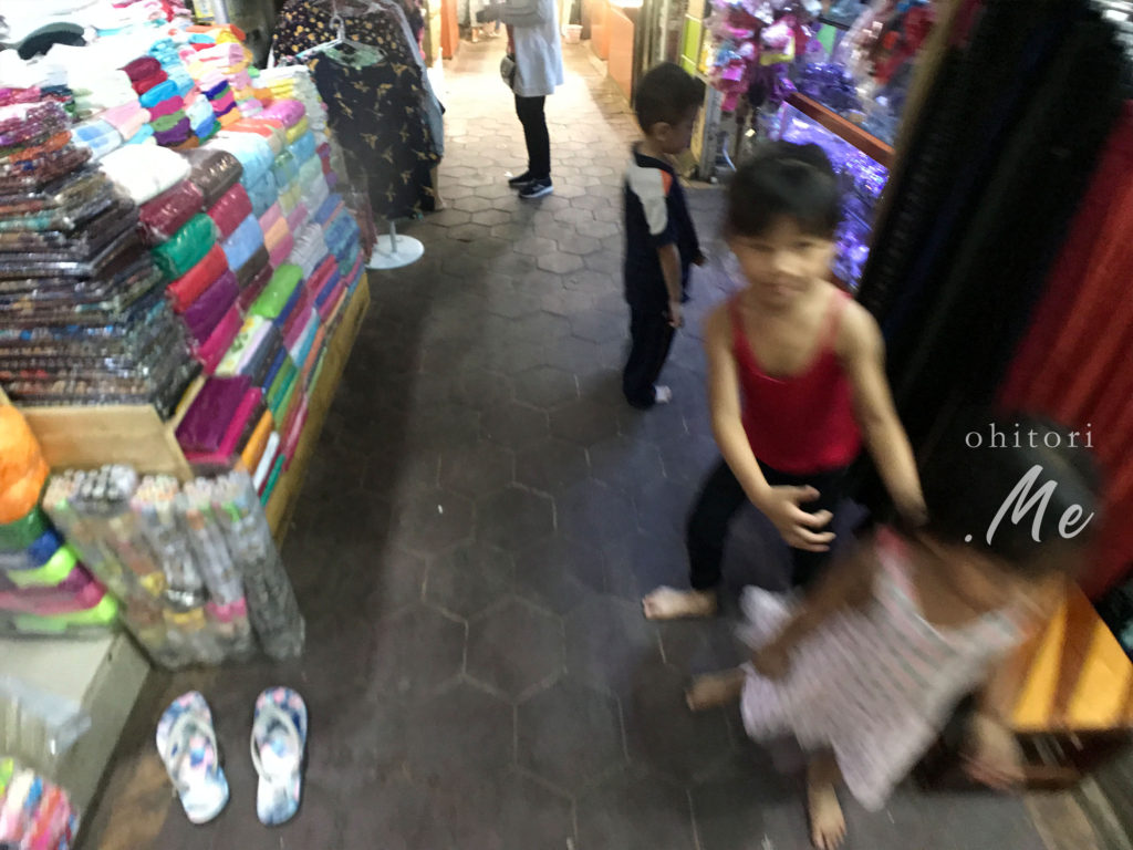 どこの国でも市場は、現地の生活の一部が垣間見れ、旅の楽しみのひとつです。特に生鮮食品売り場や総菜屋さんは「地元の台所」といった生活感を感じられて大好きです。ここでは、働くお店の方も地元のお客さんも、女性が多い印象でした。母親についきてきた子どもたちも市場で遊んでいます。
